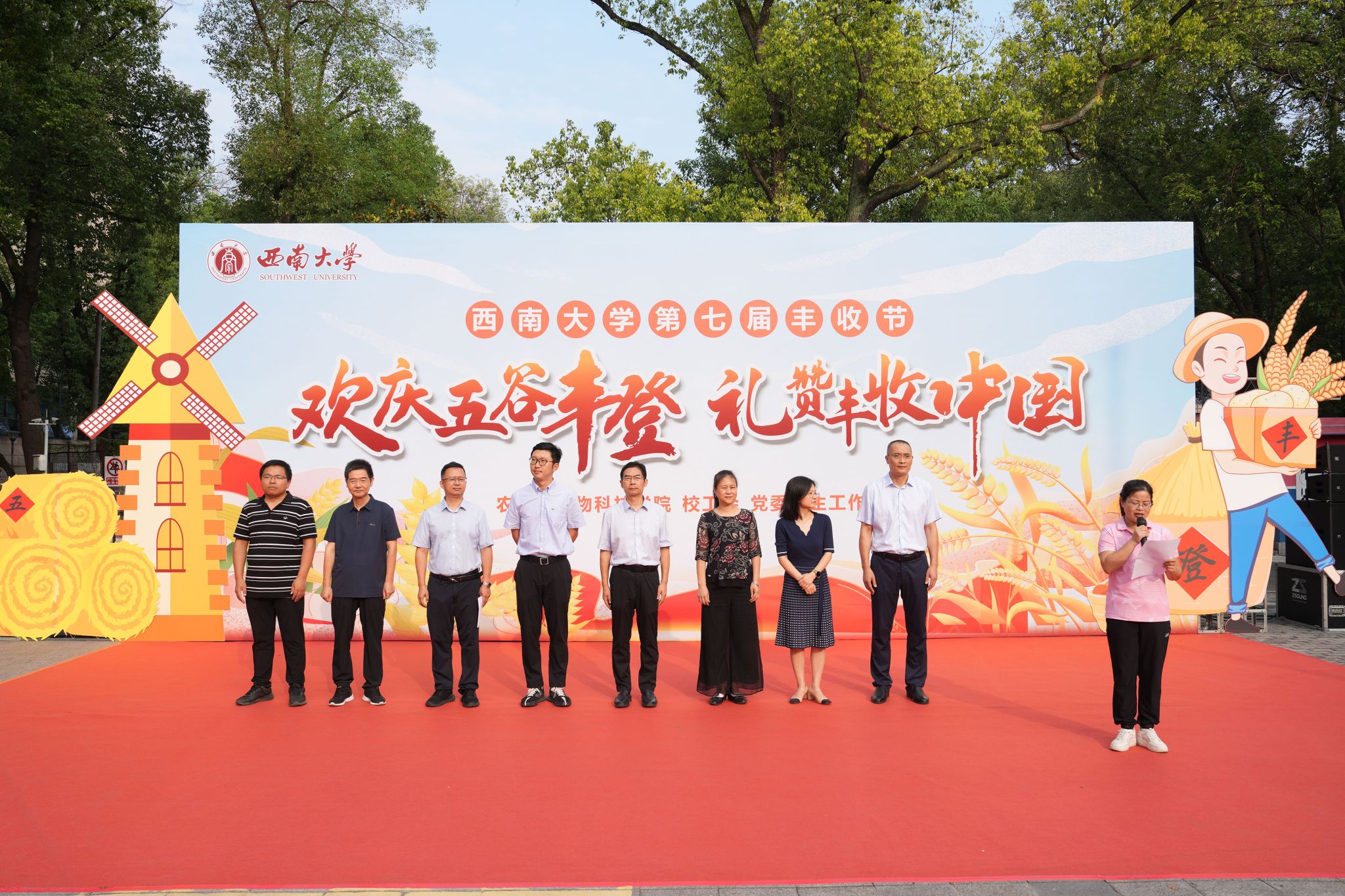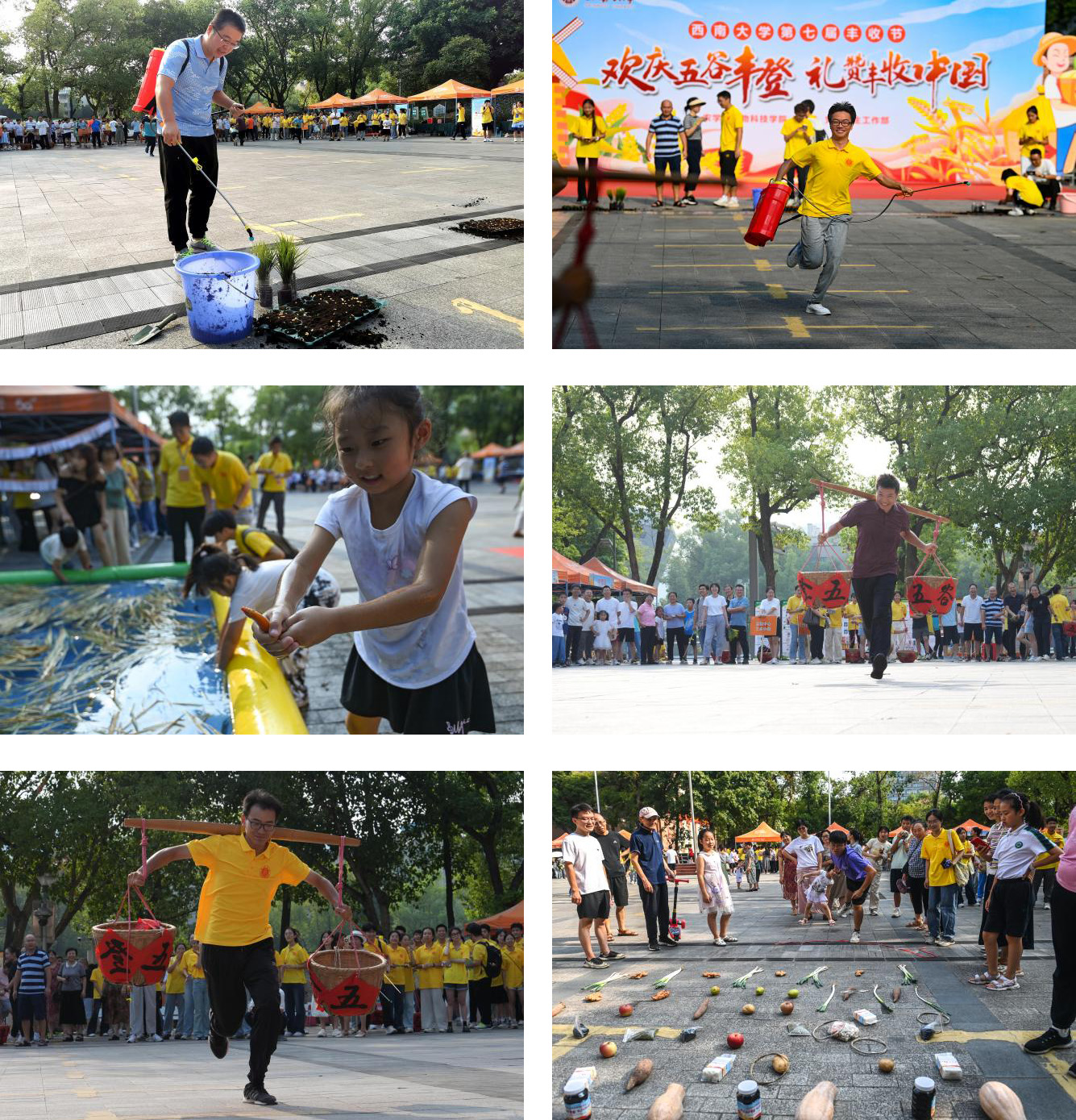 春华秋实,岁月安然,亿万农民怀揣中国梦。为庆祝第七届 中国农民丰收节,9月22日,学院以“欢庆五谷丰登,礼赞丰收中国”为主题,成功举办西南大学第七届中国农民丰收节系列活动。全校师生一道参与农事民俗体验、农事竞赛活动,参观科研农产品展览,共享丰收的喜悦,体验劳动的快乐。学校研工部部长秦松、团委书记于涛、工会副主席李玉兰、教学质量监控与评估中心主任陶丽以及学院领导班子、师生代表等出席活动。