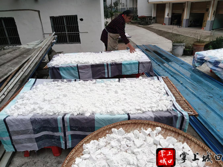 (上图:李坪村村民在种植“渝薯198”的红薯地忙着采挖;下图:李坪村村民正在晾晒 “渝薯198”红薯制作的淀粉)