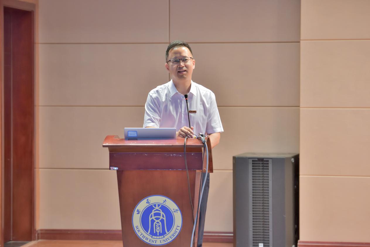 教师代表、西南大学含弘研究员宋佳明以师者之心寄语新生:教育是生命的对话,愿与同学们共赴知识之约,在求真路上相伴成长。