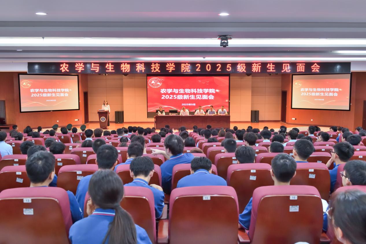 9月8日下午3点,农学与生物科技学院2025级新生见面会在隆平楼404报告厅隆重举行。学院党委书记阳义健,院长吕典秋,党委副书记刘秋艳,纪委书记、副处级专职组织员郑莉佳、副院长张建奎,副院长李云峰,各系主任,各年级辅导员以及2025级班主任、教师代表出席了见面会。会议由党委副书记刘秋艳主持。