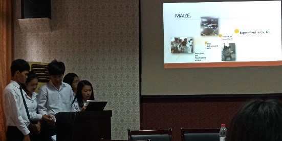 刘志斋老师简单介绍了这次汇报交流的基本要求及本次汇报的学生顺序之后,卢璐、李娅楠、原征即先后开始各自的实验报告,根据前一轮汇报时指导老师提出的建议,展示了近期的最新进展及后续的实验计划。随后5为泰国学生集体分享了到学校后3周以来的体验与感受;随即他们分别汇报了各自在水稻、玉米、薯作等各作物和团队实验室的具体实验与收获,包括他们深入大田以及参加各自实验团队课外活动的体会与感受。最后,隆平实验班的唐欣宇、王艳珍、王曦彤作为最后一组成员分别汇报了自己的实验进展,本学期隆平实验班的实验进展汇报工作也随之结束。