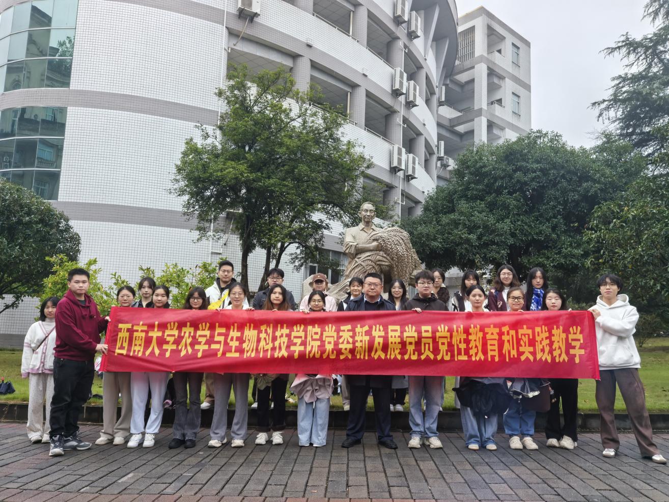 11月1日上午,西南大学农学与生物科技学院党委专职组织员薛中华带领23名新发展的党员,开展了一场以“弘扬科学家精神,传承红色基因”为主题的党性教育活动。此次活动是响应市委教育工委关于加强新发展党员党性教育的专项要求,结合学校特色和本地红色资源设计实施的实践教学。