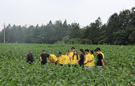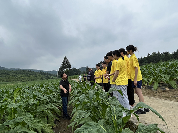 实践团师生还前往烟田开展无人机喷洒叶面肥技术服务,用科技赋能烟草产业。无人机进行智能作业,可以自主规划选择航线,在各种复杂的地理条件下,仍然能畅通无阻。“无人机雾化喷施可以保障肥料在叶片上均匀分布,能满足叶片对不同元素的需求,省时省力又节约高效”,农学与生物科技学院副院长张建奎老师向烟农和实践团的学生进行讲解。实践团成员纷纷走进烟田,观察烟草的生长发育状况,把课堂学习和乡村实践结合起来,真正做到知行合一。“他在打顶抹杈,是保障烟叶质量的重要技术,这是我们上课学过的内容,今天亲眼看到了”,实践团成员高旗阳同学望向田间的烟农兴奋地说道。