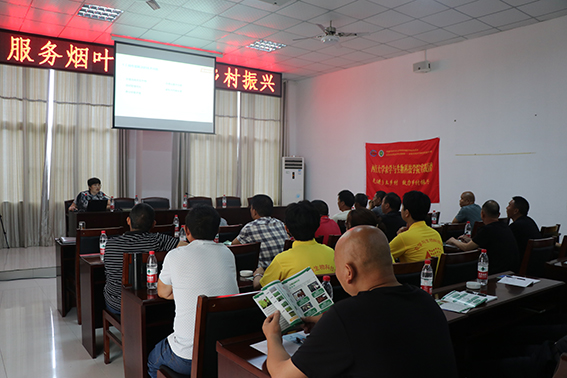 烟草作为彭水县润溪乡的特色支柱产业,为促进农户增收致富发挥了重要作用。“甘薯可在一定程度上抑制烟草病菌的繁殖蔓延,降低烟叶连作风险”,7月6日上午,农学与生物科技学院烟草育种栽培专家戴秀梅老师为当地烟农、烟技员开展烤烟—甘薯间种套作技术专题讲座,介绍烟薯套种的优势意义、操作步骤和技术要点,并推荐学院研发的“全国十大好吃薯”——渝红心薯98和渝紫香10号作为间套作品种,以提高土地利用率,增加烟农收益,助力农业增效。同时,实践团的同学们专门制作了烟草—甘薯间套作技术指导手册,分发给烟农和烟技员,图文并茂地呈现操作步骤,便于他们平时查阅。讲座后,重庆彭水烟草科技小院挂牌仪式在润溪乡烟草站举行。据了解,自2015年西南大学农学与生物科技学院在润溪乡建立烟草研究基地起,学院定期安排专家团队为当地烟草种植开展技术指导,并派出本科生、研究生常驻基地,深入村屯农家,为烟农提供技术服务,助力润溪烟草产业发展。