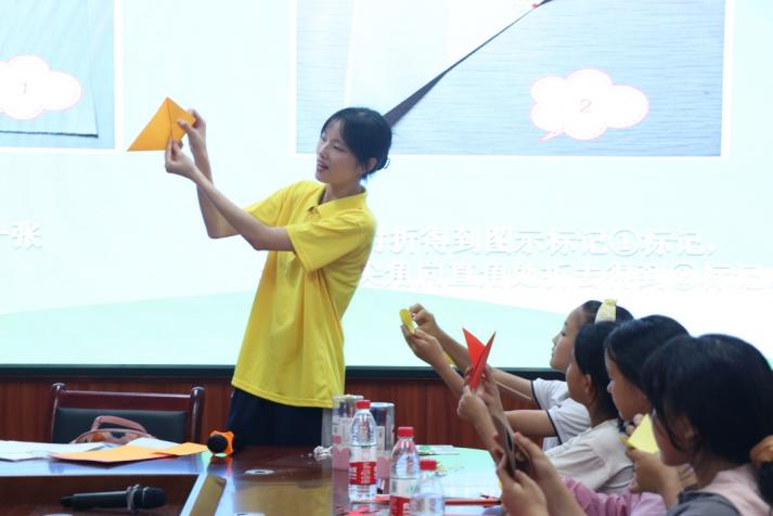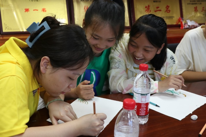 实践团林倩同学将农学与美术相结合,以“水稻”为主题,带领小朋友制作相关的绘画、折纸、手工等美术作品,开展“以美润心”趣味美术小课堂。课堂上小朋友们踊跃举手回答关于水稻的问题,“我知道,我知道,秧苗长到后面会长稻穗结稻花!”小朋友们一点一点勾勒出水稻的轮廓、一片一片把水稻的叶子贴上、并用小水彩笔给水稻点缀上金黄的稻穗……小朋友们低着头,小手拿起叶子轻轻地放在卡纸上,再用小手轻轻地压紧粘牢。林倩说:“看着小朋友们对自己的作品这么喜欢,感觉自己的讲授十分有意义,不仅启发了小朋友们的兴趣,也带给了他们快乐”。