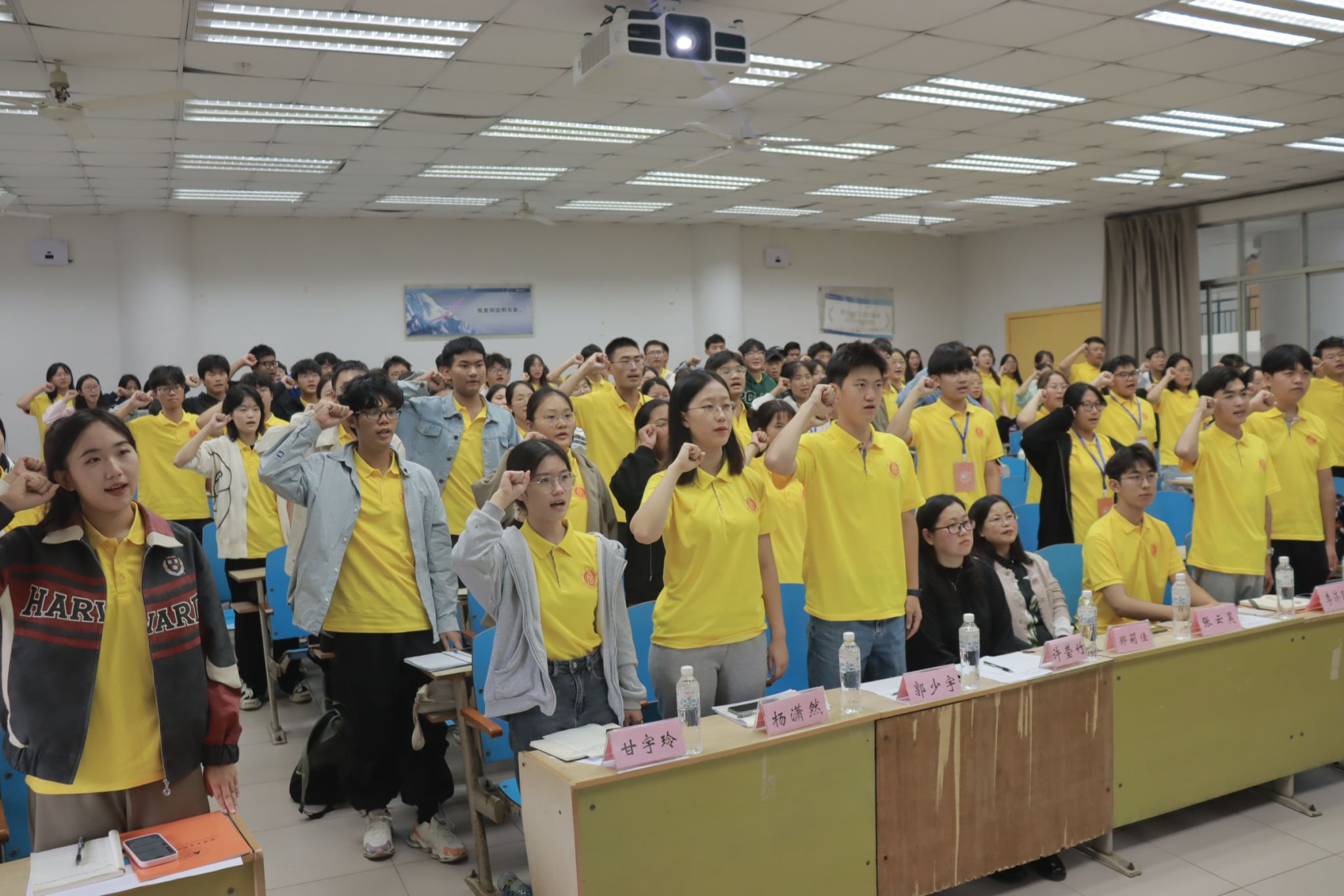 在庄重而悠扬的团歌声中,大会拉开帷幕。团委书记许莹竹老师宣读第十九届团委及学生会主要工作人员任命书和工作人员录用名单,许老师对第十九届团委及学生会寄予殷切期望,她希望同学们增强责任意识,深化各部门之间的合作交流,牢记服务宗旨,杜绝“事不关己,高高挂起”、“踢皮球”等不良风气,搭建好同学与学院沟通的桥梁,在学生工作中锤炼过硬本领、增长智慧才干。