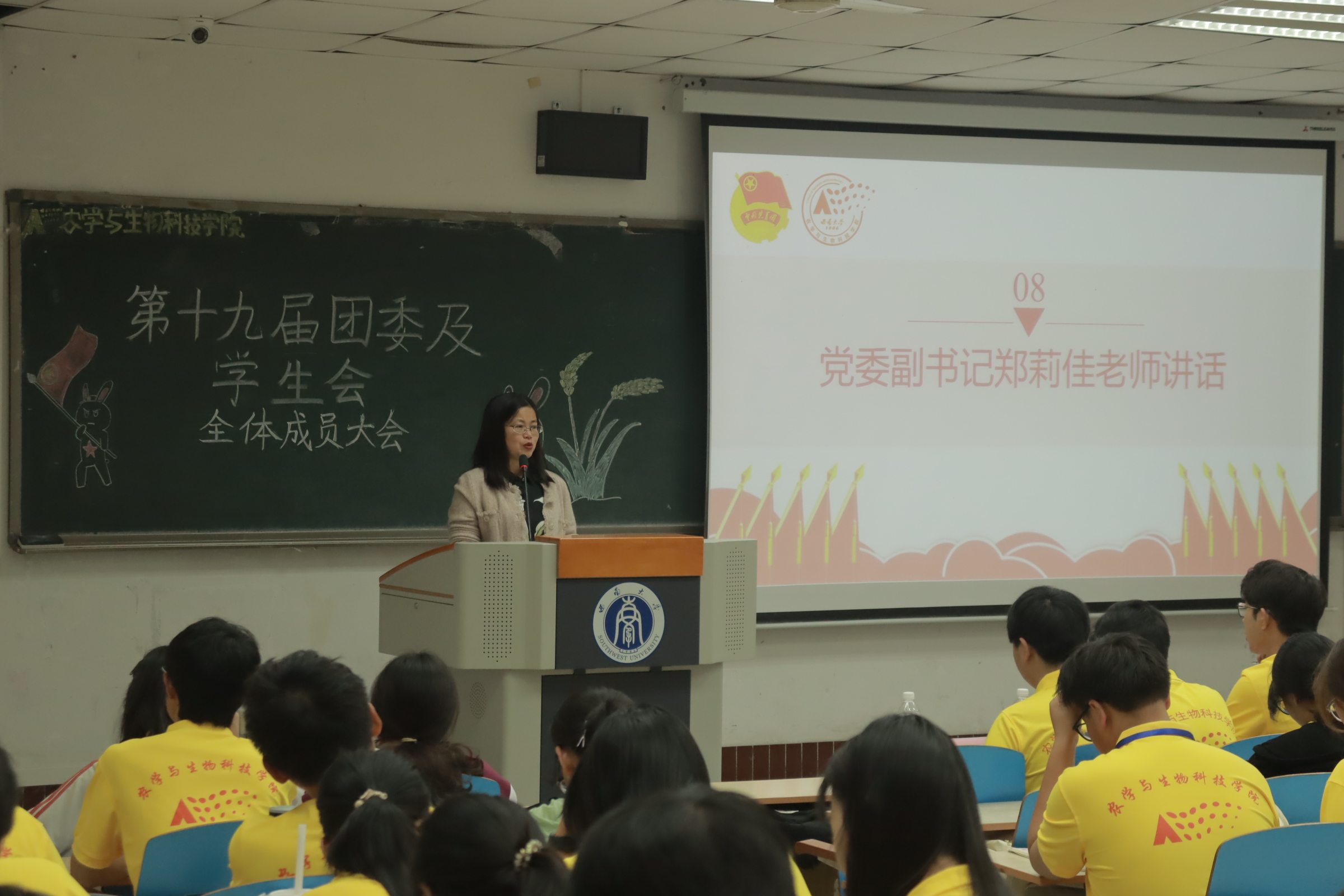 2023年10月19日,农学与生物科技学院第十九届团委及学生会全体成员大会于32教212教室如期举行。学院党委副书记郑莉佳老师,团委书记许莹竹老师,学院优秀学生骨干代表、西南大学学生会主席团成员张云昊同学出席大会,第十九届团委及学生会全体成员共同参加,大会由办公室工作人员李佳宜同学主持。