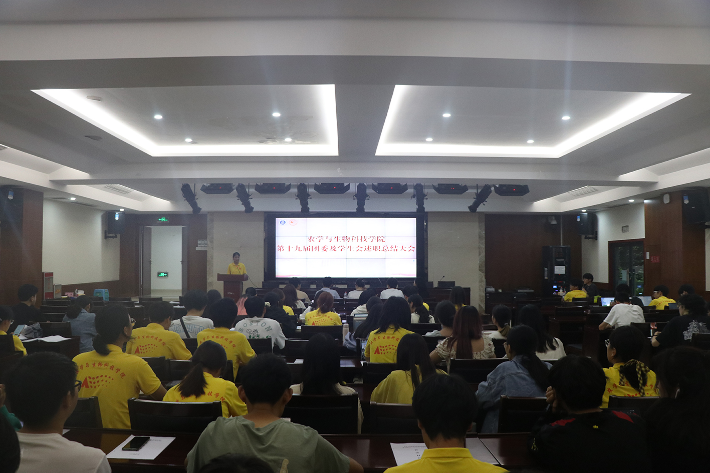 6月16日,农学与生物科技学院第十九届团委及学生会述职总结大会于南区活动中心106会议室顺利召开。学院团委书记许莹竹老师出席会议,第十九届团委及学生会全体成员共同参会。