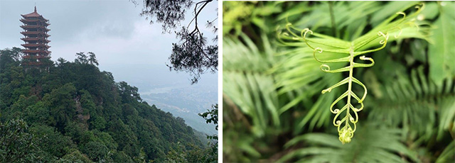 对学生而言,认真学习课程的同时,这也是一次亲近自然、放松身心的机会。同学们清晨在雾霭中醒来,拿着收集工具跟随老师走在高大乔木下铺满碎光的小道上,新鲜的空气沁人心脾。一路上所见的植物多种多样,不乏奇特、艳丽,老师耐心地为同学们讲解不同植物的特征特性,同学们仔细倾听、认真记录。在与大自然的亲密接触中,大多数同学惊呼:“比起没有呼吸的钢筋土筑,每一株植物都是有感情的,值得我们用心感触和交流。”夜晚回到住所,同学们没有停下学习的脚步,自发组织辨认植物,复习学习的知识并牢记于心。